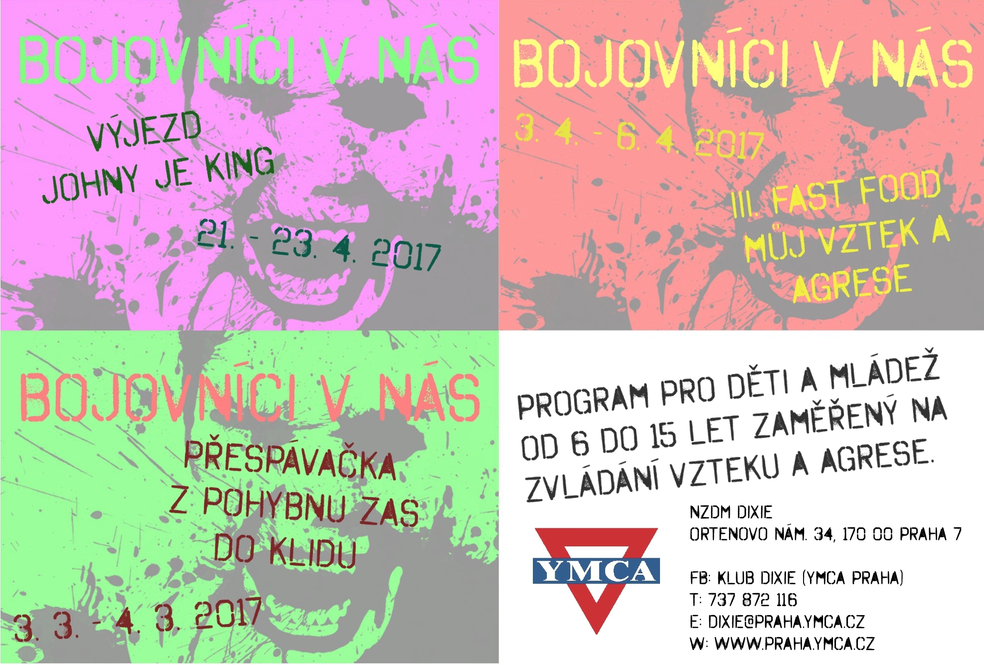 /16.2.2017/ Dětská agrese a její zvládnutí je tématem dvouměsíčního preventivního programu v YMCA. Pod názvem Bojovníci v nás startuje koncem února v nízkoprahovém klubu Dixie v pražských Holešovicích – jednom ze čtyř nízkoprahových zařízení pro děti a mládež, které v České republice provozuje YMCA, největší mládežnická organizace na světě. Program Bojovníci v nás tu bude probíhat až do konce dubna 2017.