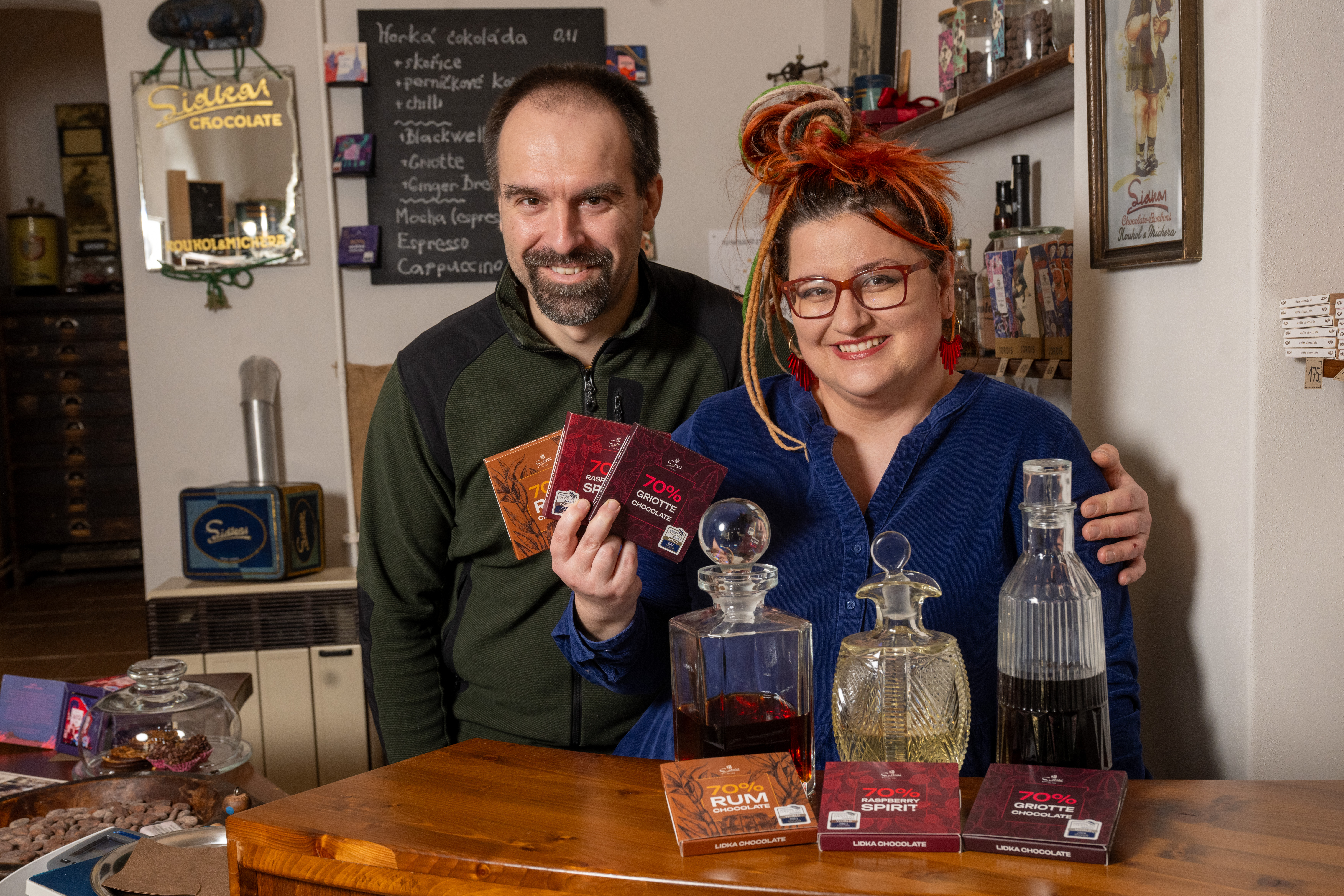 … mezi neobvyklé produkty Lidky patří čokoláda s velbloudím mlékem, s japonským čajem matcha, s chmelem, či oceňované čokolády s tóny alkoholů – vždy v