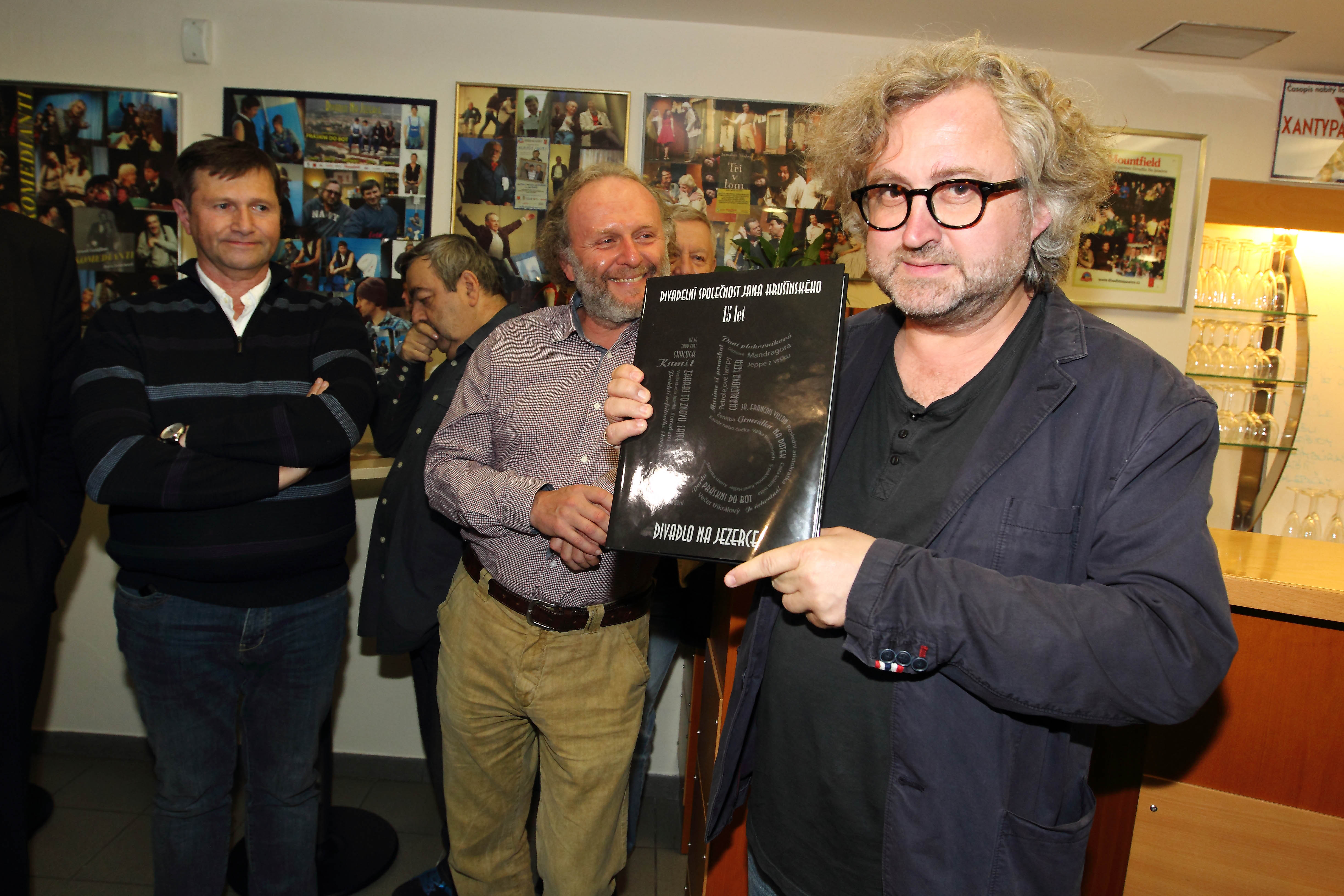 /18.10.2017/ Patnáctiletá historie Divadelní společnosti Jana Hrušínského se vešla na 240 stran reprezentativní publikace, kterou pro své diváky připravili Jan Hrušínský a grafička Barbora Hrušínská jako narozeninový dárek. Slavnostní křest se uskutečnil v Divadle Na Jezerce v úterý 17. října. Výpravnou divadelní knihu pokřtili stálí spolupracovníci a podporovatelé Jezerky, profesor Martin Hilský, herec Jaroslav Dušek a režisér Jan Hřebejk.