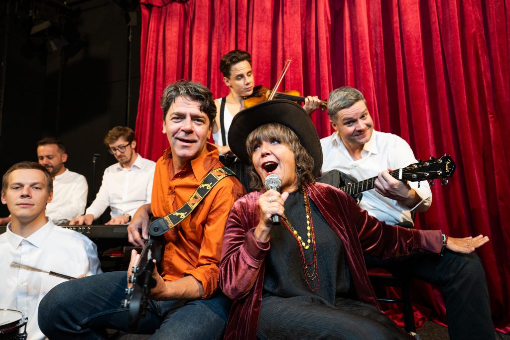 Mužská kapela v Olmerce není jen hudebním doprovodem – charismatičtí herci se stávají součástí příběhu a ztělesňují v něm různé postavy z Evina života. „Jsme kapela, která Evu provází – v dobrých časech i v těch těžkých. A každý z nás zároveň hraje někoho, kdo pro ni byl důležitý,“ říká jeden z členů mužského orchestru Antonín Holub. A Barbora Hrzánová s nadsázkou doplňuje: „Své chlapce muzikanty si hýčkám, neb jsou nejen krásní, ale též talentovaní.“ A s humorem sobě vlastním dodává: „Ale bacha, nepůjčím!“.