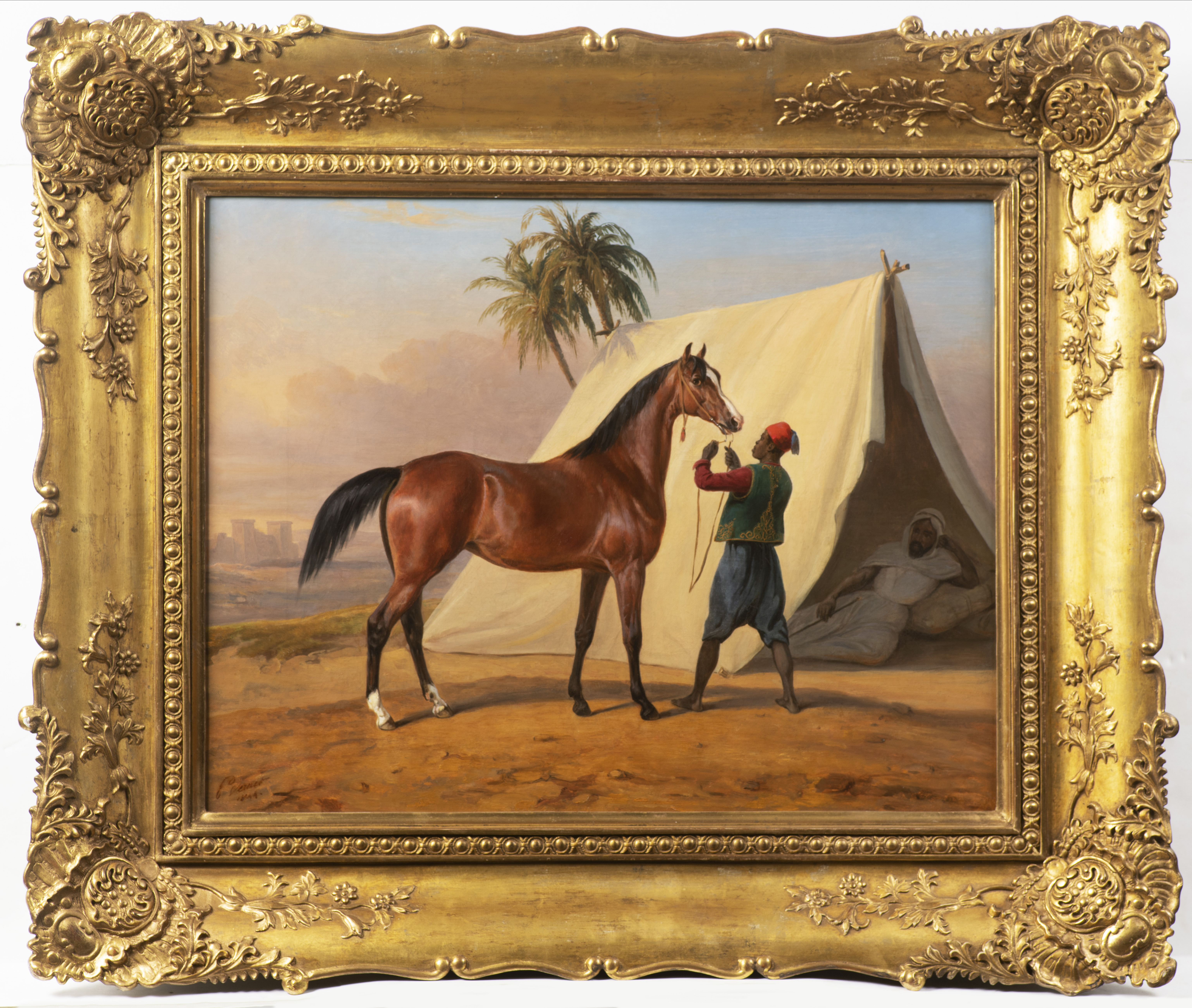 K vzácnostem aukce se řadí rovněž obraz Předvádění arabského koně (1844) od znamenitého francouzského malíře a portrétisty Émila Jeana-Horace Verneta: licitace startuje na 1 800 000 korunách.