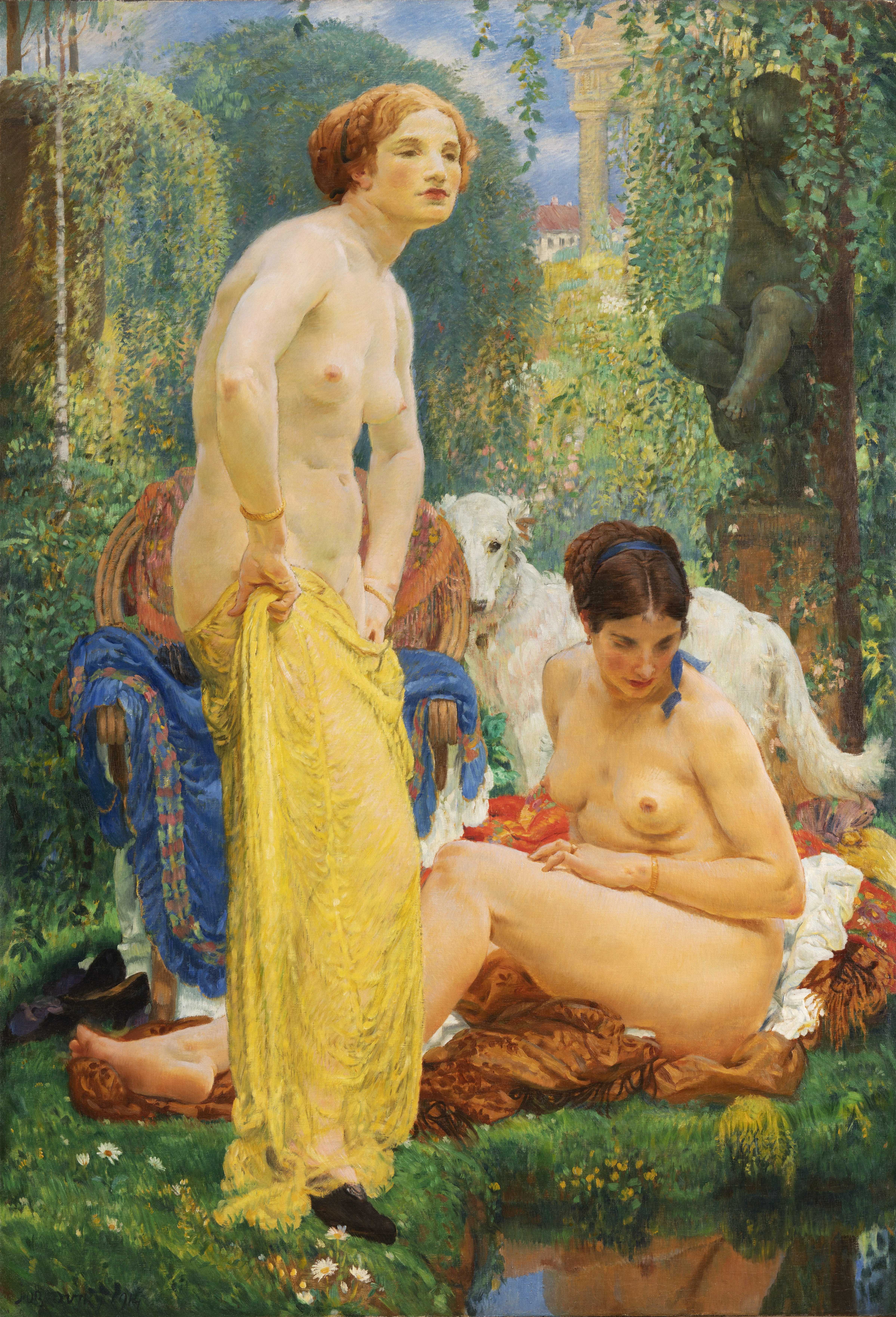 O nového majitele se bude ucházet také půvabný velkoformátový olej V přírodě (1914) od Jakuba Obrovského. Obraz je monumentální oslavou krásy přírody i ženského těla: vyvoláván bude od 380 000 korun. Harmonii a optimismus vyzařuje i Jarní krajina Jindřicha Pruchy (1913), dražená od 450 000 korun.