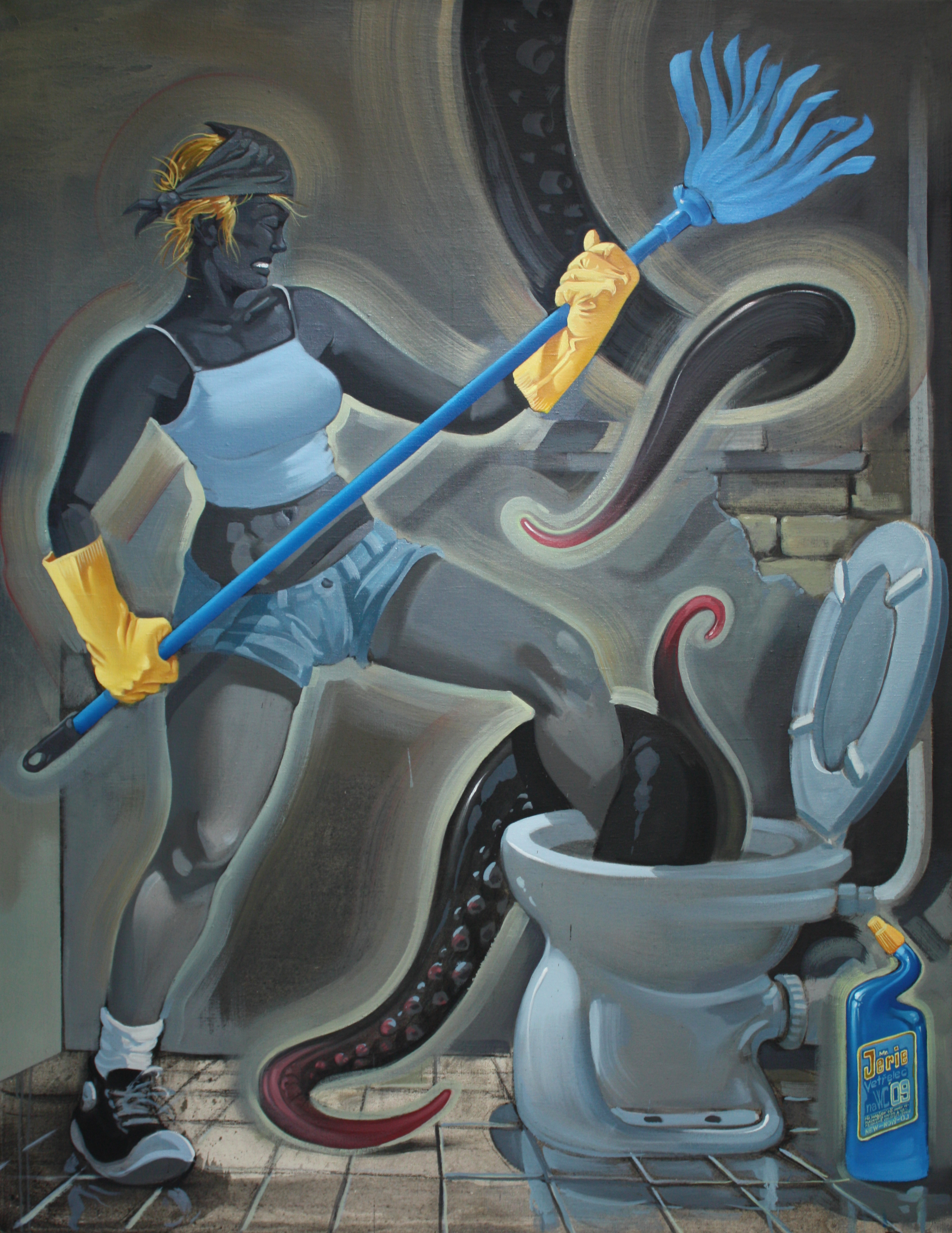 Pohnuté okamžiky z historie, superhrdinové, svět dinosaurů, fantastické příšerky i tajuplný svět hub – to vše je pro Karla Jerie už přes dvacet let stálou inspirací.  „Když se podíváme na velké obrazy Karla Jerie, zjistíme, že jsou to příběhy jakoby kouzlem zastavené do jednoho magického okamžiku. A pokud jde o jeho komiksy, najdeme v nich vždycky něco navíc. Svým osobitým zpracováním historických témat, jako je Candide, ale i král Oidipus, doba husitská, spor o pravost rukopisů či okupace Československa v roce 1968, autor systematicky přispívá ke všeobecné vzdělanosti. Což není vůbec samozřejmé v době, kdy jsou lidé zahlceni a méně čtou,“ říká kurátorka výstavy Pavla Petráková Slancová, která už v Galerii Portheimka zorganizovala řadu výstav významných malířů a grafiků.