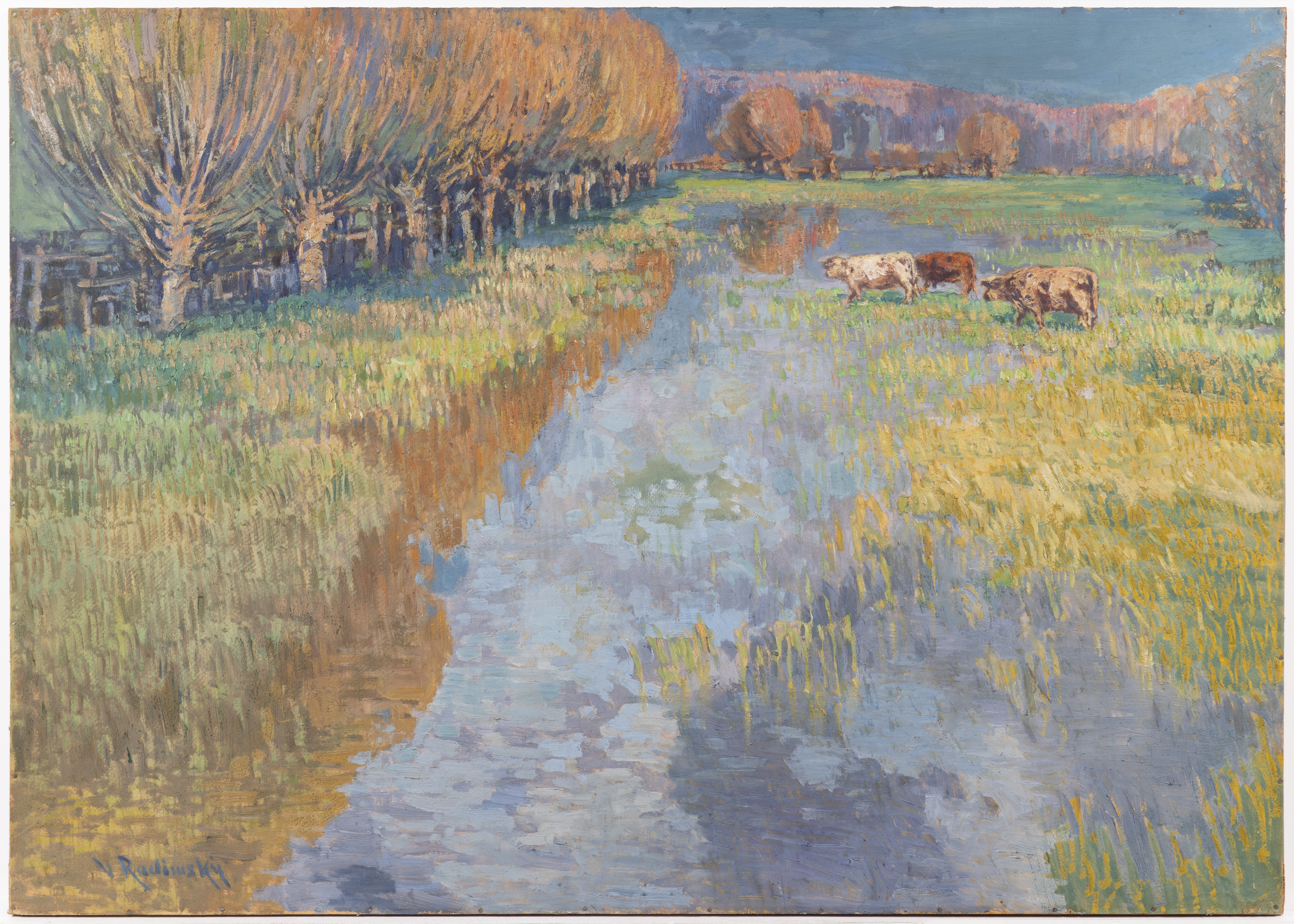Výraznou pastelovou barevností upoutá obraz od Václava Radimského s názvem Motiv z Normandie (okolo roku 1900) z jeho vzácného francouzského období s vyvolávací cenou 650 000 korun.