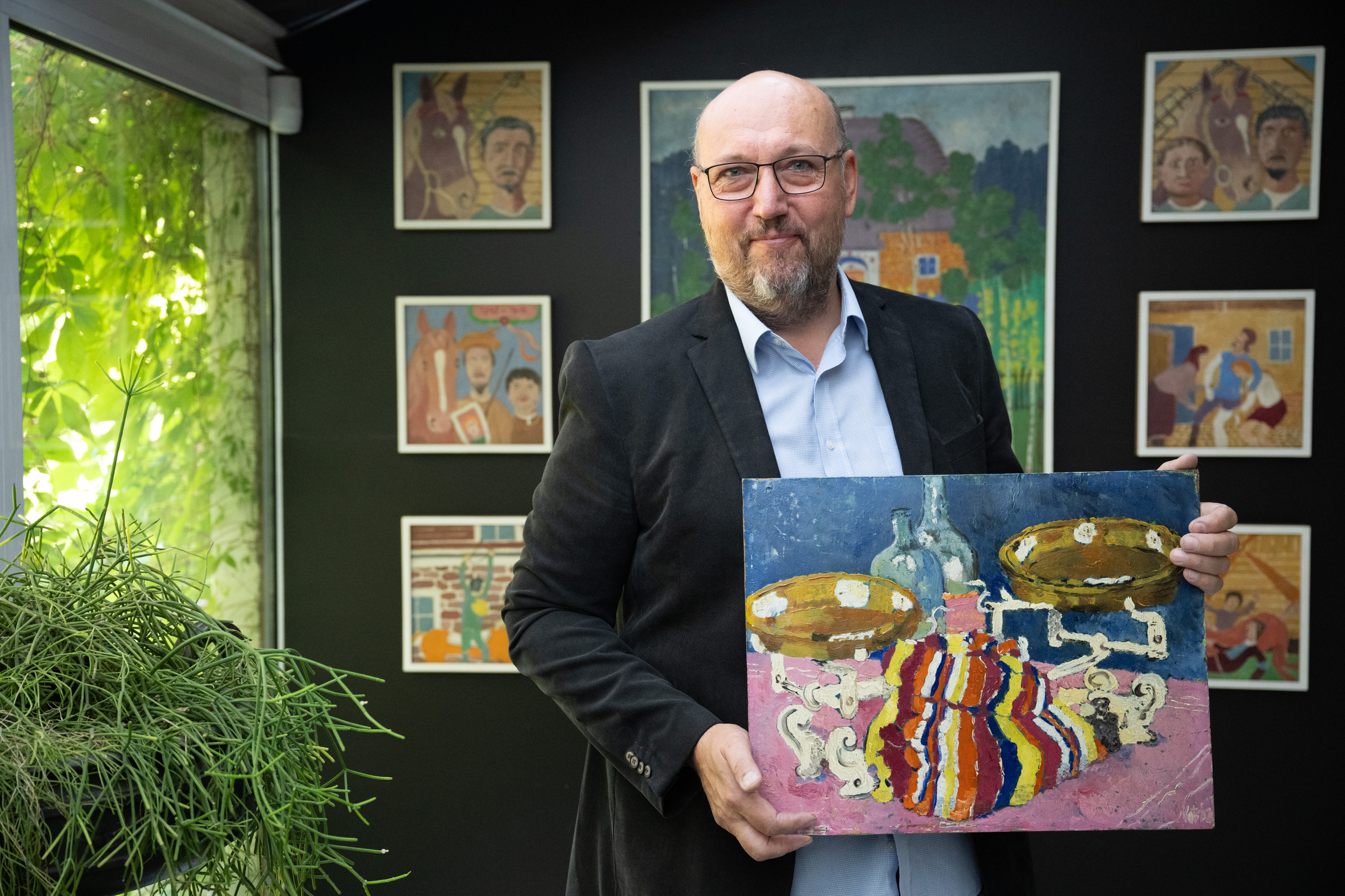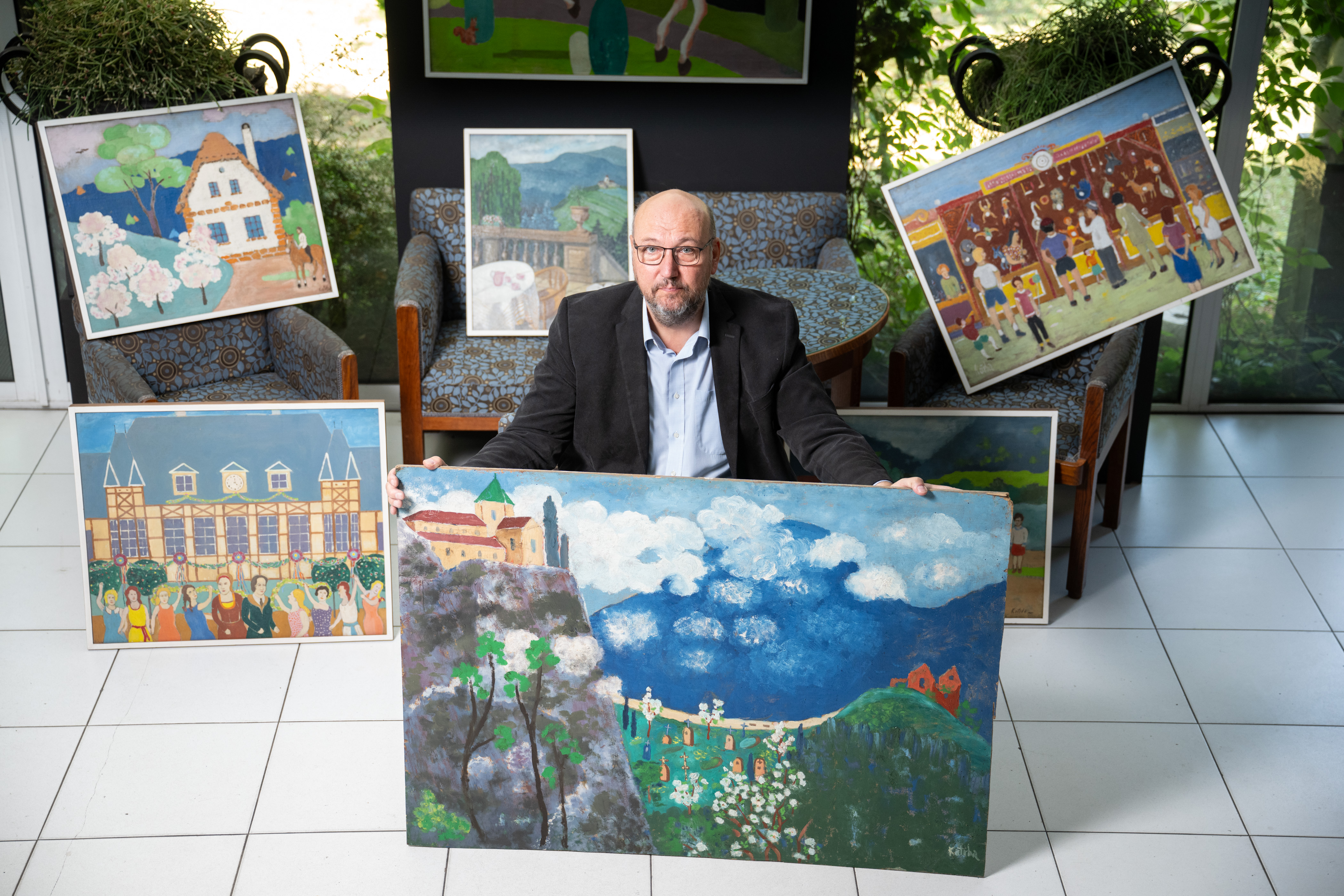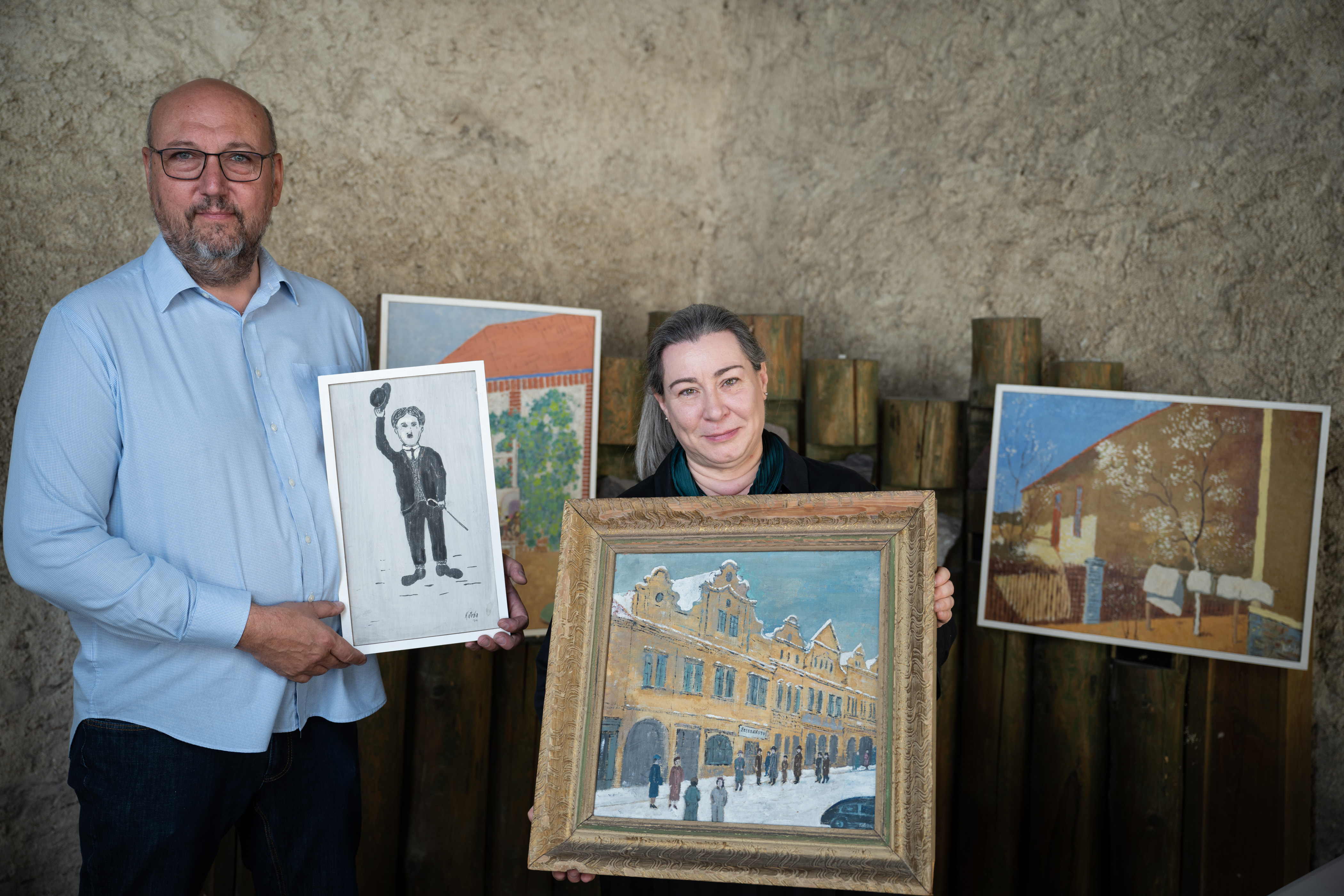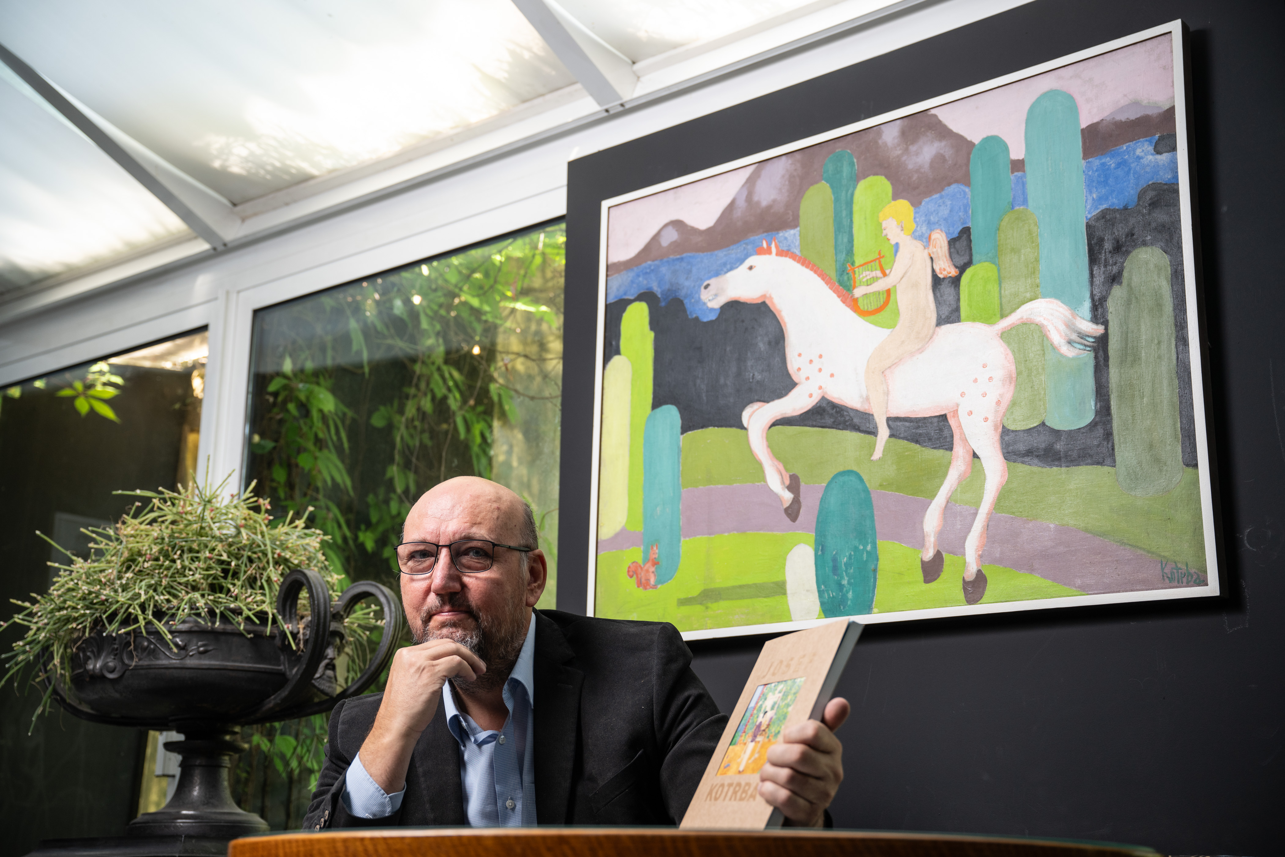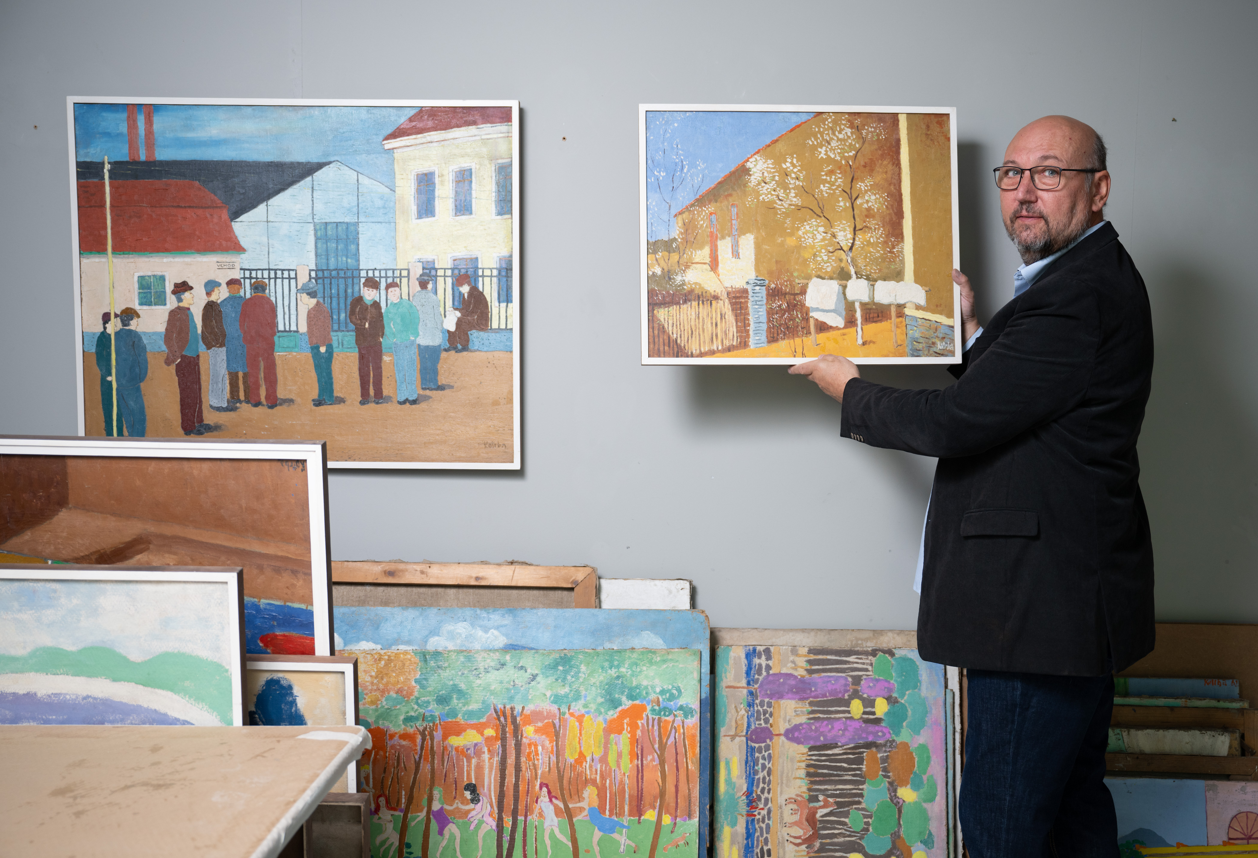 /13.8. 2024/Temperovými a olejovými barvami maloval na překližku, lepenku a sololit, na rámy napínal tkaninu určenou na rolety nebo obyčejnou pytlovinu. Na jeho obrazech se realita mísí s fantazií a výsledek se líbí odborníkům i laikům. A on sám prý vypadal jako Charlie Chaplin… Architekt a stavitel Josef Kotrba (1896-1983), nejprve spolumajitel stavební firmy v Praze-Střešovicích a po roce 1948 technický úředník Místního národního výboru v Králově Dvoře, maloval celý život především pro své potěšení. A jako malíř by nejspíš upadl v zapomnění – nebýt Tomáše Hejtmánka, majitele galerie a aukčního domu Arthouse Hejtmánek. Ten po náhodném nálezu Kotrbových maleb ihned rozpoznal kvalitu díla a část z něj už loni v pražském Arthousu vystavil. Letos se radostné, zářivě barevné obrazy znovuobjeveného malíře představí hned na dvou místech současně. První výstavu nazvanou Nalezený malíř Josef Kotrba II pořádá od 19. září do 31. října Arthouse Hejtmánek v Praze Bubenči, druhou pod názvem Josef Kotrba, zapomenutý malíř je možné zhlédnout od 20. září do 31. října v Muzeu Českého krasu v Berouně.