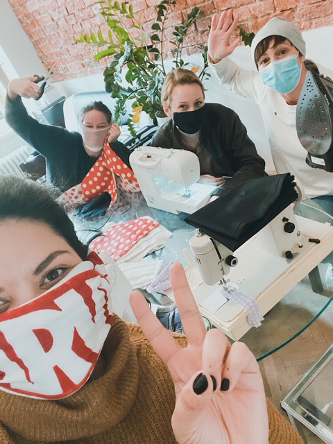 Do šití se tak se svým dívčím týmem pustila třeba Natálie Řehořová, roušky teď šije Kristýna Frejová nebo Anna StropnickáJanem Grundmanem.  Skládané bavlněné roušky vznikají v domácích podmínkách. Materiál na ušití částečně poskytlo Tesco, jimž chtějí smíchovští dodat už do konce týdne 150 kusů. Porodnici v Podolí bavlněnou metráž věnovalo samo divadlo: tam poputuje dokonce 300 kusů.