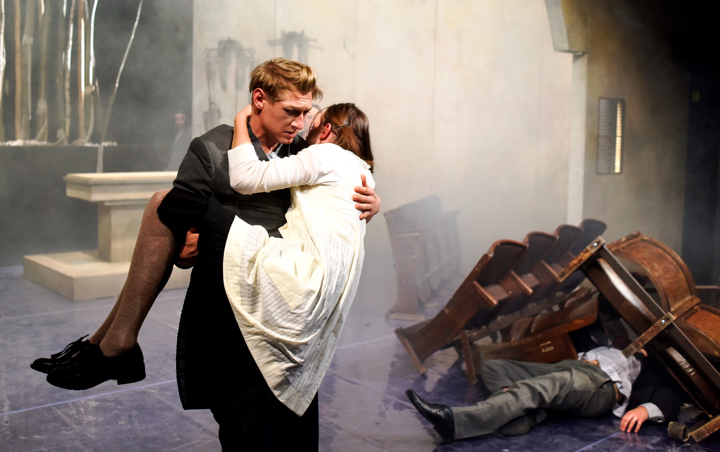 Scénografii vytvořila Gombárova stálá spolupracovnice Lucie Labajová. Ta na jevišti vytvořila prostor velké kaple s kamenným oltářem, starými, dřevěnými divadelními lavicemi a průzor k varhanám. Kostýmy Lenky Odvárkové se nedrží konkrétní folklórní ani historické tradice: jsou pojaty v jednoduchých, nadčasově působivých siluetách, doplněných výraznými detaily.