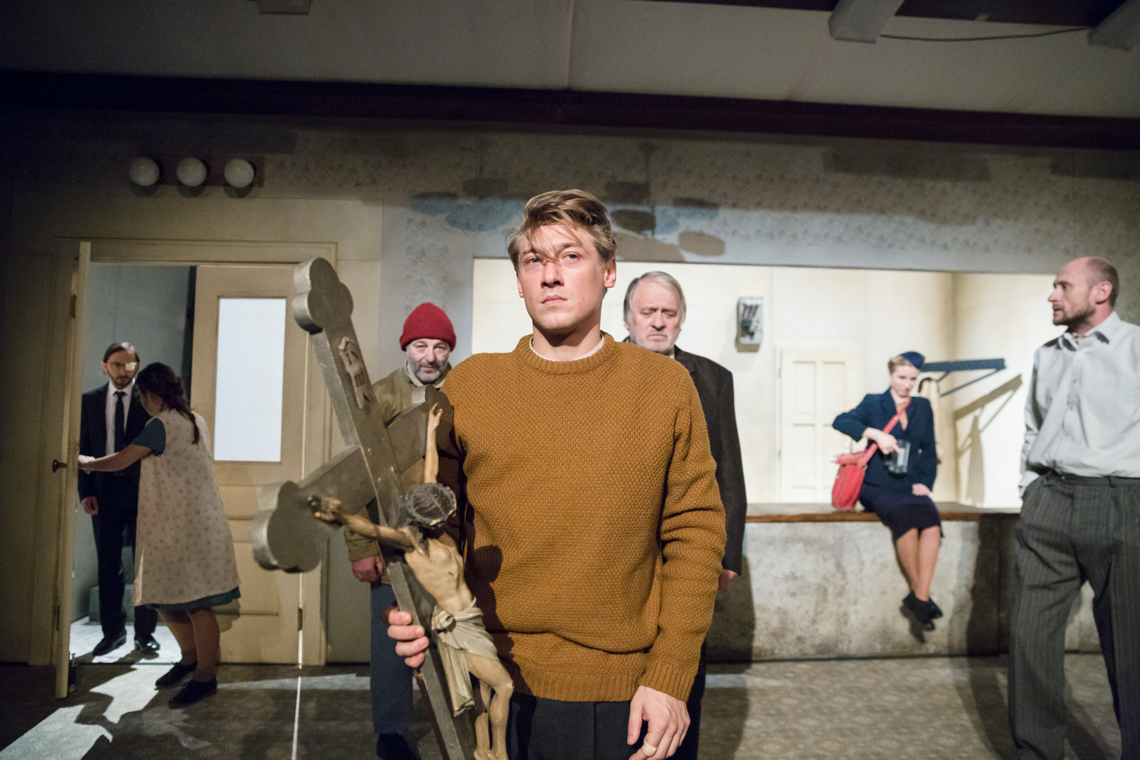 Zajímavou scénografii vytvořila pro inscenaci osobitá výtvarnice Lucie Labajová. Základ scény tvoří šatna místní tělocvičny, kde se lidé připravují na svá náročná „veřejná vystoupení“ a odkládají tu své svršky, aby si převlékli vhodný „úbor“ či kabát do nové doby. Prostor se zároveň bude přímo před zraky diváků proměňovat tak, jak ve hře plyne čas. Kostýmy navrhla Lenka Odvárková, hudební doprovod je dílem Jiřího Hájka.