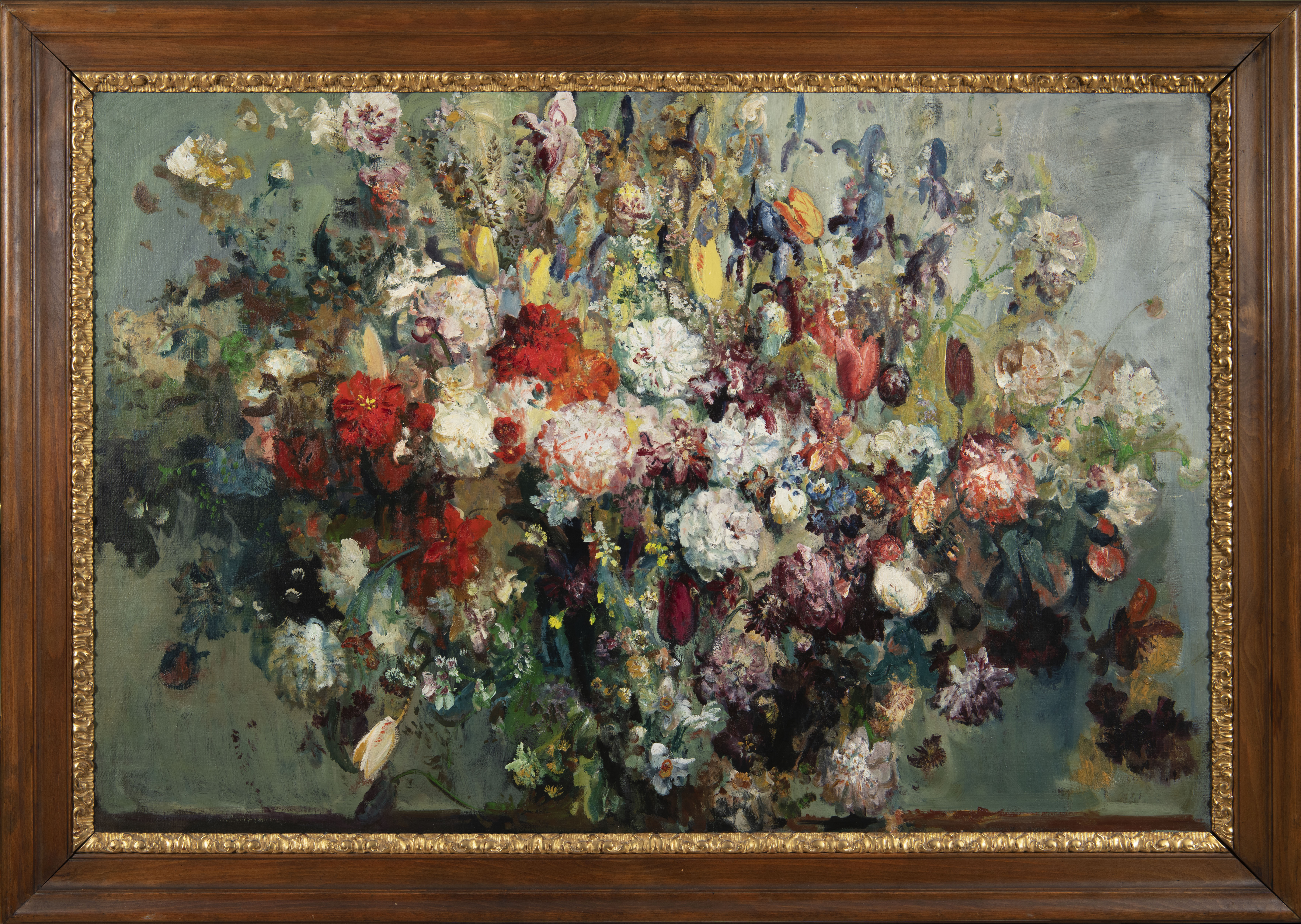 Pozornosti jistě neujde ani monumentální Pestrobarevná kytice jarních květin, jak ji ve 40. letech 20. století zachytil Oldřich Blažíček, malíř s mimořádným koloristickým citem. Efektní kompozici pocházející pravděpodobně z majetku hraběte Františka Harracha nabídne aukce od 220 000 korun.