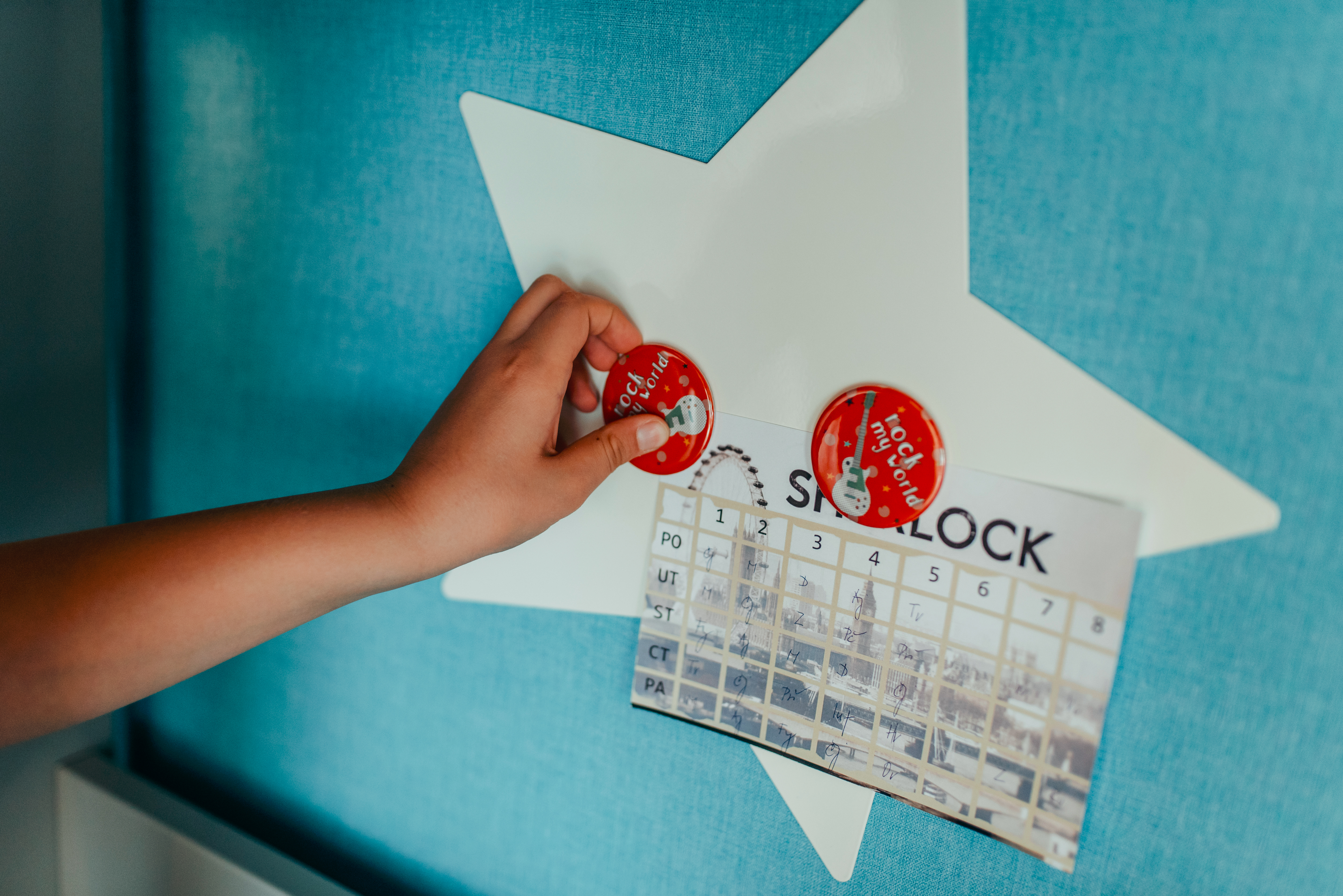 Zařizovat celý koutek pro školáka se letos nechystáte, ale uvítáte nějakou drobnost, která ho vylepší a dětem udělá radost? Skvělá je atypická magnetická tabule, která poslouží jako připomínač, organizér i galerie. Dobře se na ní uplatní rozvrh hodin, výtvarná díla a lze ji využít i jako nenásilnou učební pomůcku. „Tabule v podobě kytičky, hvězdy nebo dlouhých pásků navíc studijní koutek krásně zútulní,“ říká Šárka Richtrová.