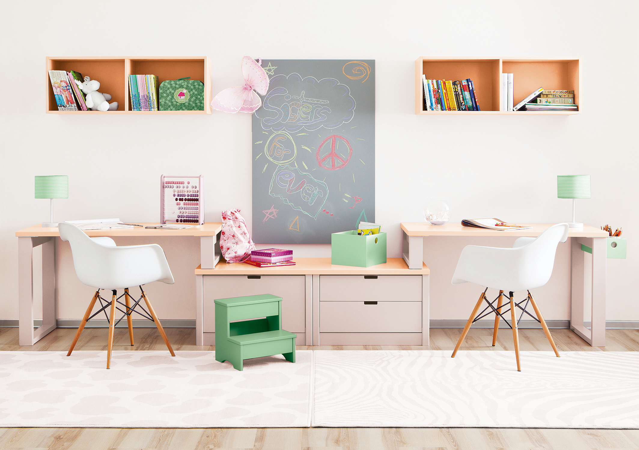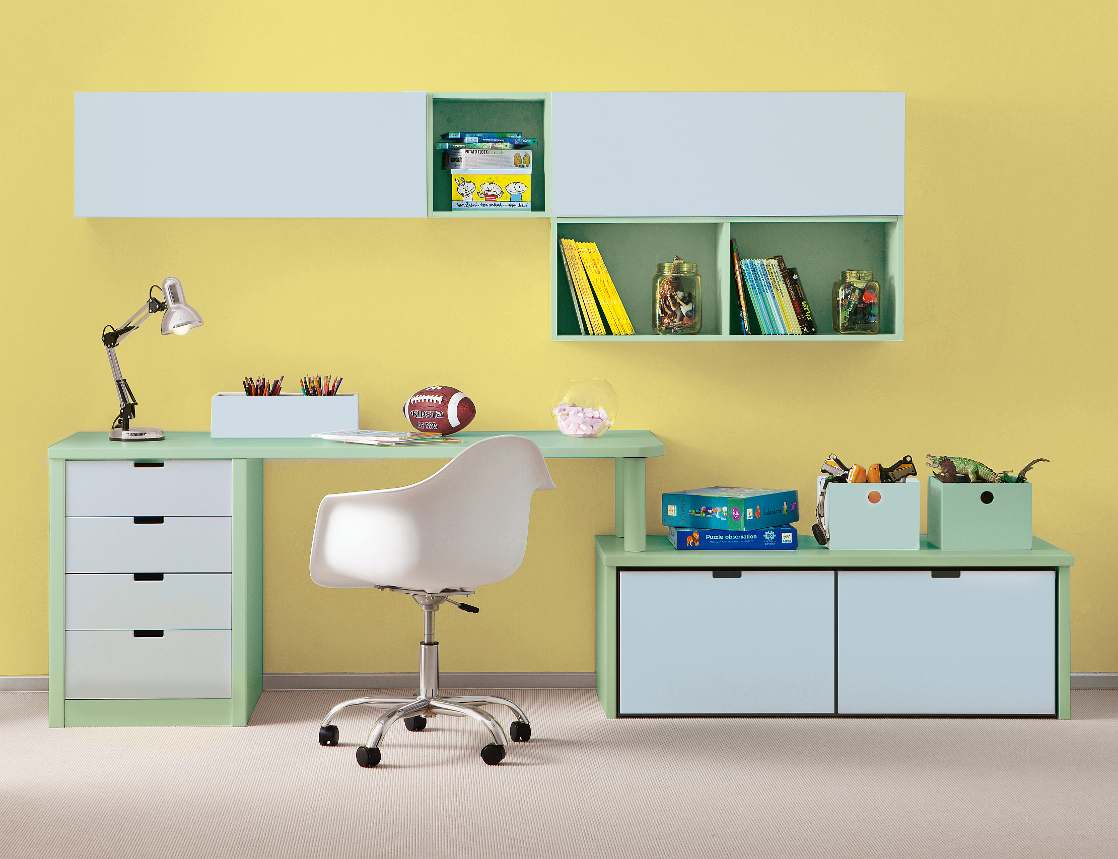 Roli v tom, jak školákovi bude učení dařit, hrají i barvy nábytku a stěn: studiu prý svědčí žlutá, modrá a zelená. Zatímco žlutá aktivizuje, podporuje chuť k jídlu, zlepšuje paměť a potlačuje chvilkovou únavu, modrá a zelená napomáhají lepšímu soustředění – ideální je tedy jejich vyvážená kombinace. „V holčičím pokojíku se uplatní pastelové odstíny růžové, od pudrové až po jemně oranžovou – uvedené odstíny se dívenkám nejen líbí, ale mají i harmonizační a uklidňující efekt,“ dodává Šárka Richtrová. Vyhýbat se ale nemusíme ani univerzální bílé, oblázkově šedé nebo tyrkysové: ta poslední prý podporuje spontaneitu a lze jí tak rozveselit studijní kout méně smělých dětí.